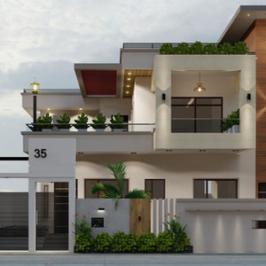 "We designed a stunning 280 sq.m modern residence in Sikri, Rajasthan, tailored to meet our client's vision. The North-East facing home features a sleek, contemporary design emphasizing horizontal lines in its elevation, perfectly capturing the essence of modern architecture. Our team's expertise in understanding client requirements resulted in a dream home that exceeded expectations. We proudly showcase this project in our company profile, highlighting our dedication to delivering exceptional design solutions."